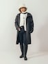 冬に着るクールかつフェミニンなモノトーンコーデ!ツヤ感のあるゴム引きのコートが立体的なフォルムを描き、ゆるめシルエットの組み合わせをモードに引き上げてくれる1枚に! 【スタッフ着用サイズ】 ・アウター:S (メンズサイズ) ・インナー:38 ・ニット:38 ・パンツ:38 ・ラバーブーツ:38 (24cm)