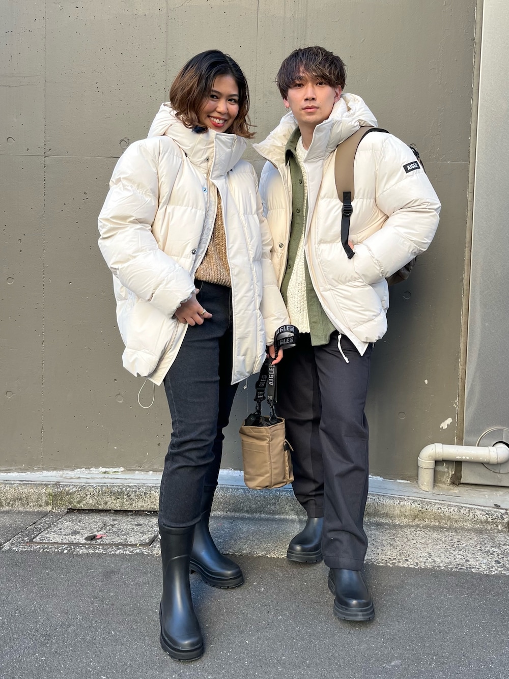 メンズのアウターをオーバーサイズで羽織ってみました!暗めなカラーに飽きた方は白のアウターをコーデに取り入れるだけでパーっと華やかに見えますし色んなカラーも合わせやすいのでおすすめです! 【スタッフ着用サイズ】 ・アウター:M (メンズサイズ) ・ニット:38 ・パンツ:36 (ストレッチすごく効いています!) ・ラバーブーツ:38 (24cm)