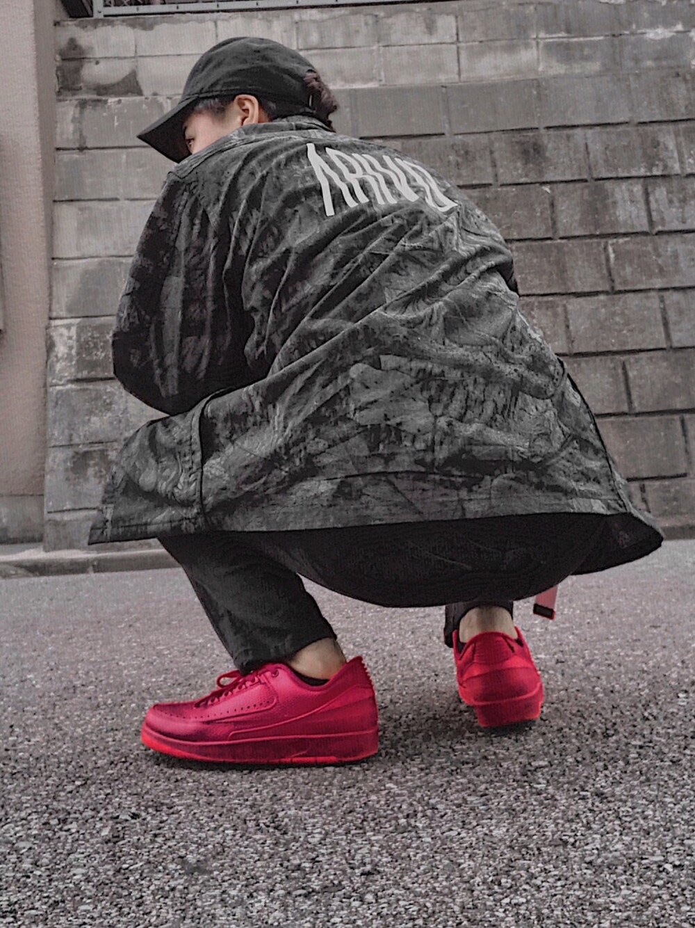 初めての投稿です! NIKEとELVILAで揃えました! インナーにELVILAの黒Tきてます(^_^*) ワンポイトで赤のジョーダン! 初ストリート系試して見ました