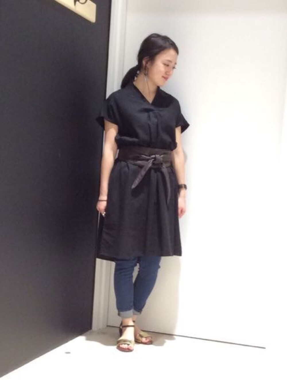 麻素材のワンピース、入荷致しました! 袖口が広めなので、腕も細く見える仕様になっています。 サッシュベルトを使う事によって、よりメリハリ感がつきます♪
