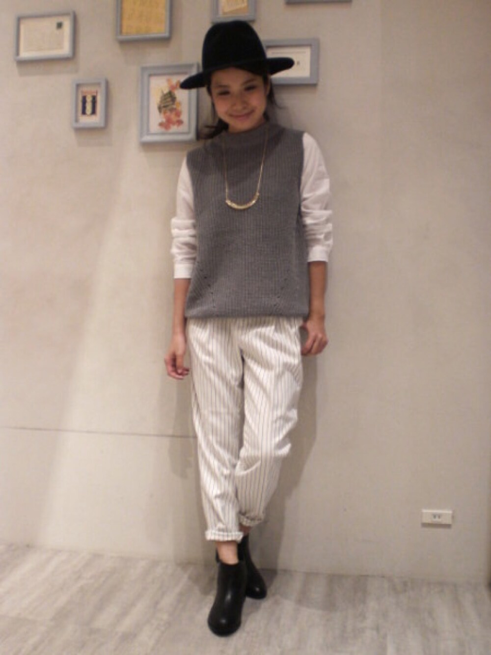 mina(LEPSIM ゆめタウン光の森)のニット/セーター「5Gソデフハクベストプルオーバー 569526」を使ったコーディネート