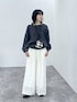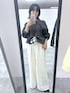 タンクを着ているかのようなドッキングデザインのワッフルトップス。 オフショルにも着られて一枚でおしゃれ見えします♩ 春らしいレース素材のパンツと合わせてモノトーンな大人カジュアルスタイルに。