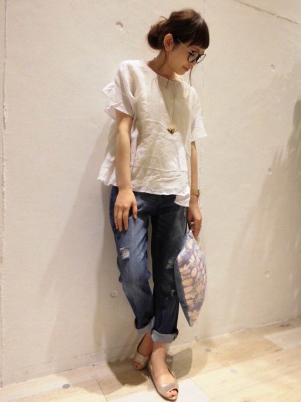 kaoのデニムパンツ「デニムレギュラークロプドパンツ 559830」を使ったコーディネート