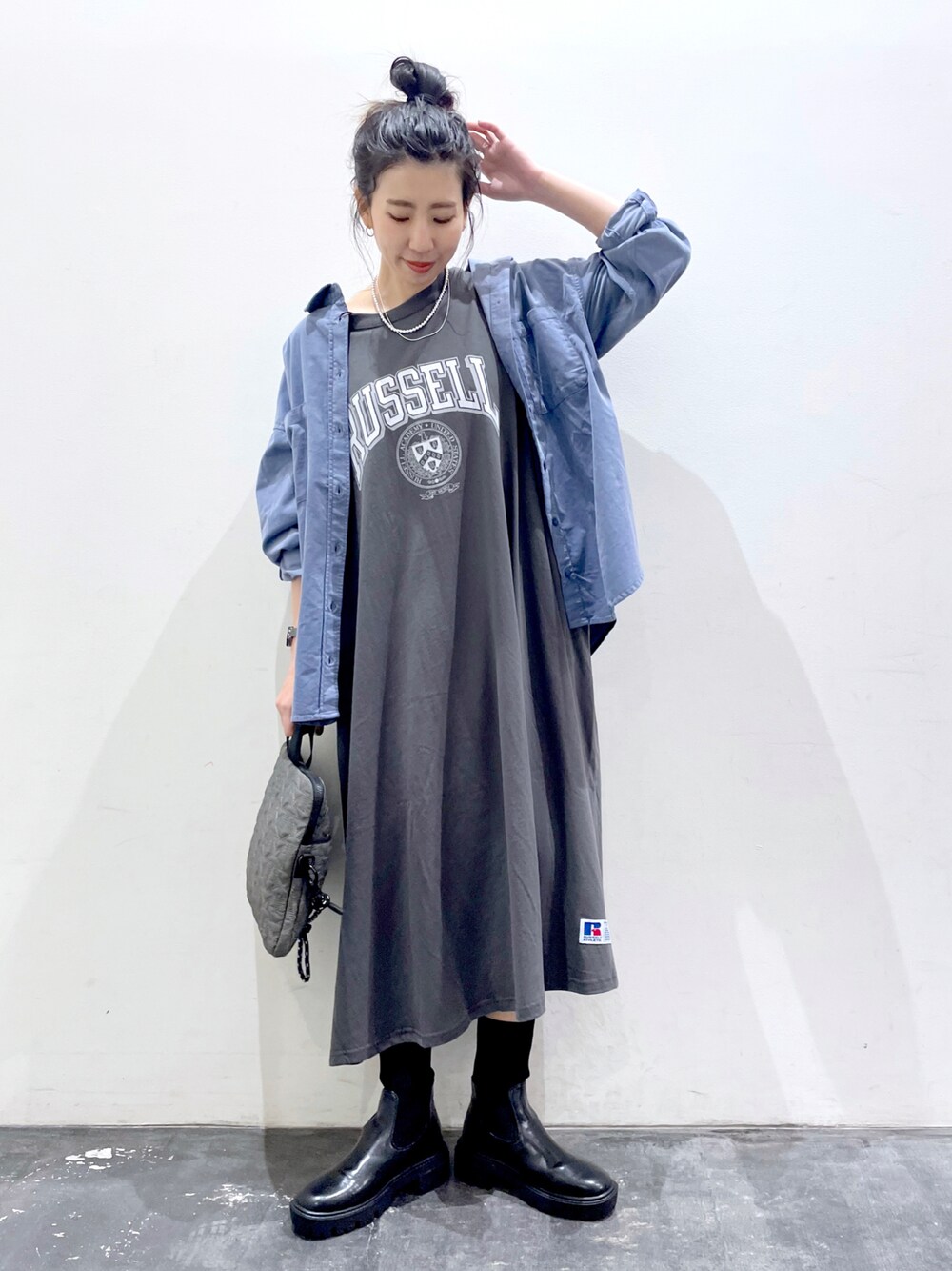 yuki(BAYFLOW イオンモール沖縄ライカム)のワンピース「【RUSSELL ATHLETIC 】別注ロゴワンピース」を使ったコーディネート
