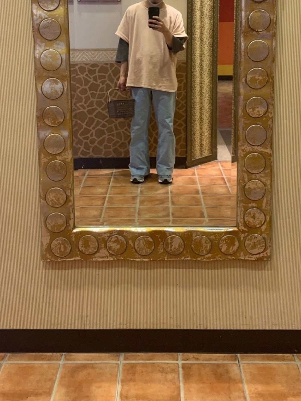 ピンクのトップスは18ssのblurhms。 袖のデザインがめちゃ秀逸。 生地感もめちゃくちゃいい。なで肩をいい感じにしてくるので気に入ってます。 ボトムは古着。トゥモローランドだったらしい。レディースのセーラーパンツだそうな。ハイウェストだからタックインしても調子いいかも。 足元は990v5。見た目的にも履き心地も最高。 s2w8のインナーも汗すぐ乾くし良いっすよ。