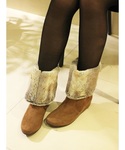 ミックスカラーのフェイクファーが可愛いブーツ。 ミドル丈はパンツインもきれいに決まります♪