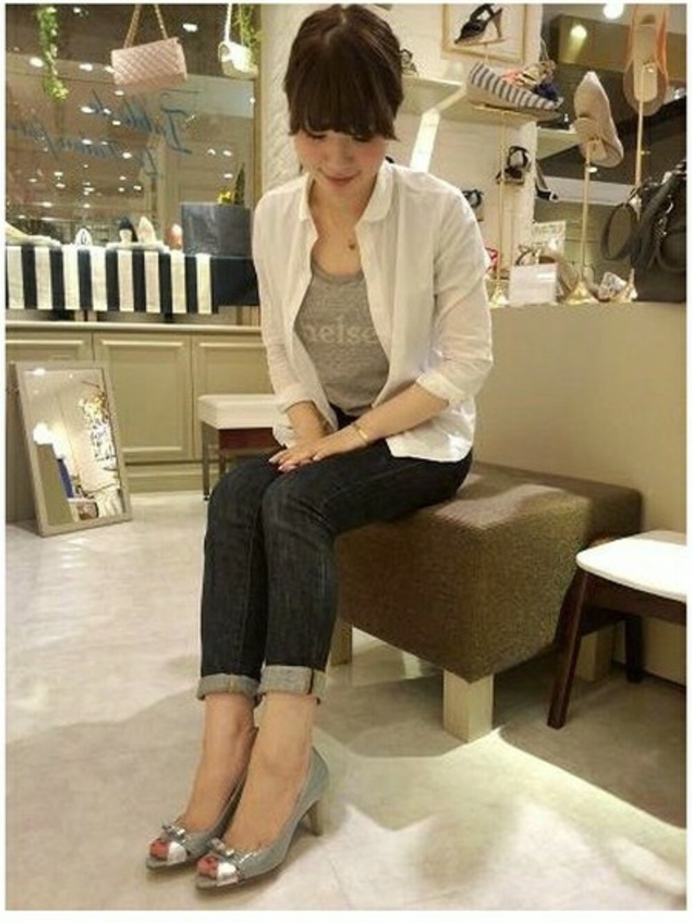 Le Talon 有楽町店スタッフのパンプス「【Cancam 8月号掲載】7CM レザーリボン OPトウ」を使ったコーディネート