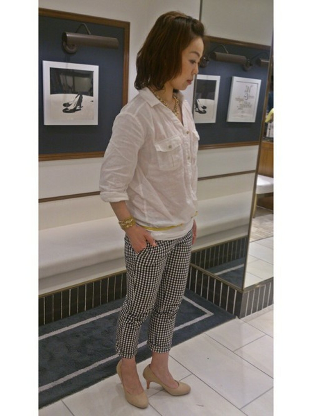 Le Talon 新宿店スタッフのパンプス「7.5CM ハイショクヒールパンプス」を使ったコーディネート