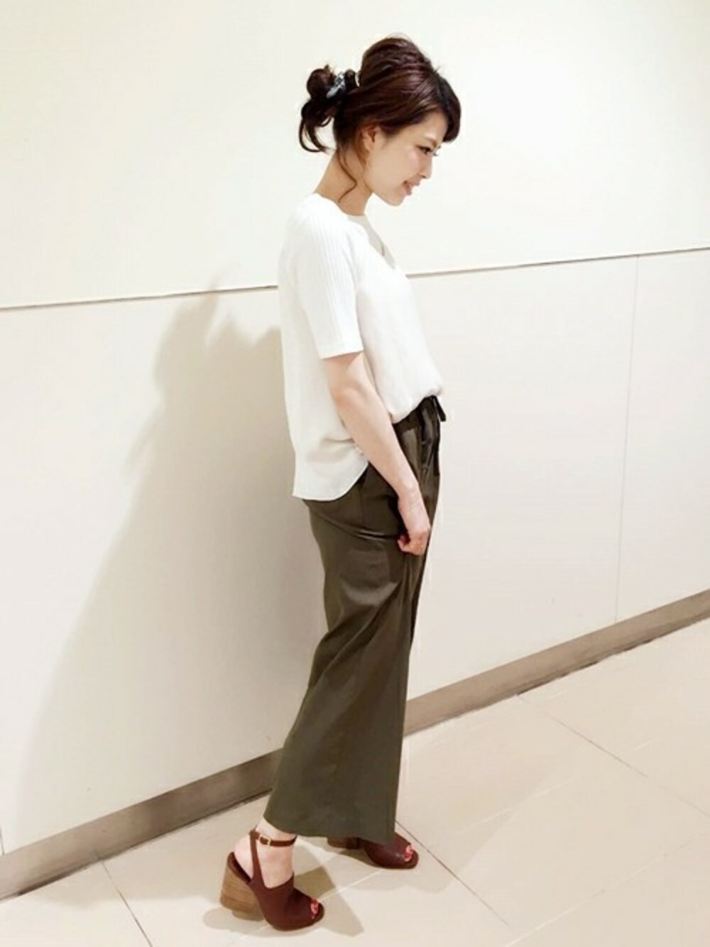 程よいボリューム感でパンツとのバランスが取りやすいサンダル。 カーキに相性の良いキャメルカラーを合わせて、色合わせを柔らかくまとめました。