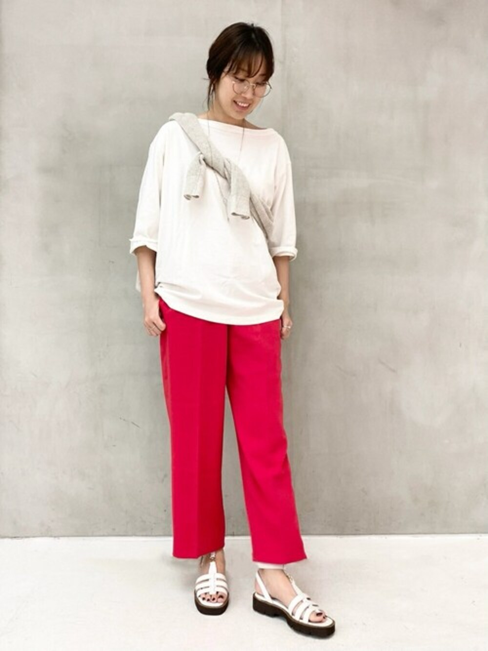 YURIのサンダル「GRISE レザーTスト タンクソールサンダル」を使ったコーディネート