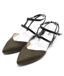 足首のストラップ使いがパンツスタイルを大人っぽく。 すっきりしたポインテッドトウはフラットでも脚をきれいに見せるのでおすすめ!