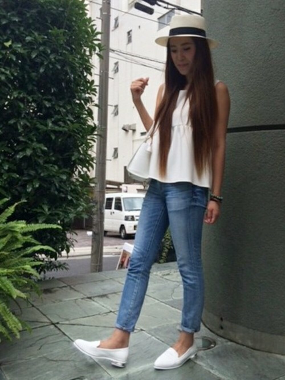 爽やかなホワイトのカラーが夏らしいローファーは、ヒールのデザインが自慢! デニムにも相性◎です。