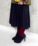 シンプルでシルエットのきれいなブーティーは、膝下丈のスカートにバランス良く合わせられるので今シーズン大活躍! カラフルなファーポンポン付きのクラッチバッグはシンプルコーデのポイントにおすすめのアイテムですよ♪