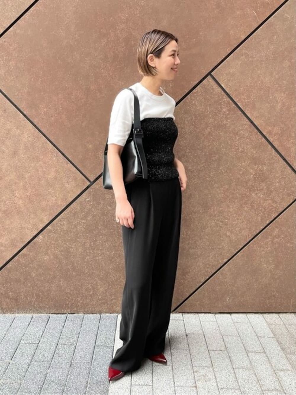 ─────────────────── 【着用サイズ】 23.5cm 【普段サイズ】 23.5cm / M 【足幅】 広め・甲高 ─────────────────── ■着用感 普段のサイズでちょうど良いサイズ感でした。 細身に見えますが、見た目に比べゆったりめで楽に履けました。 ストラップで甲を押さえてくれるので、踵が抜けやすい方にもおすすめです。 ■おすすめポイント ・深みのあるレッドカラーがコーディネートに馴染みつつ、新鮮さをプラスしてくれます。 ・モノトーンコーデの差し色にもおすすめです。 服や小物で今年注目のキラキラアイテムを取り入れて、女性らしくまとめました。 Instagramも更新中です!→ @le____suna8313 Instagramでは、日々のコーディネートや新作シューズについて更新しています。 シューフィッターの資格を取得しましたので、シューズ選びのお悩みなどもぜひお気軽にお問い合わせください♩