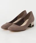オフィスにもオススメのシンプルパンプス。 ヒールにデザインがあるので、タイツに合わせても華やかな印象です。