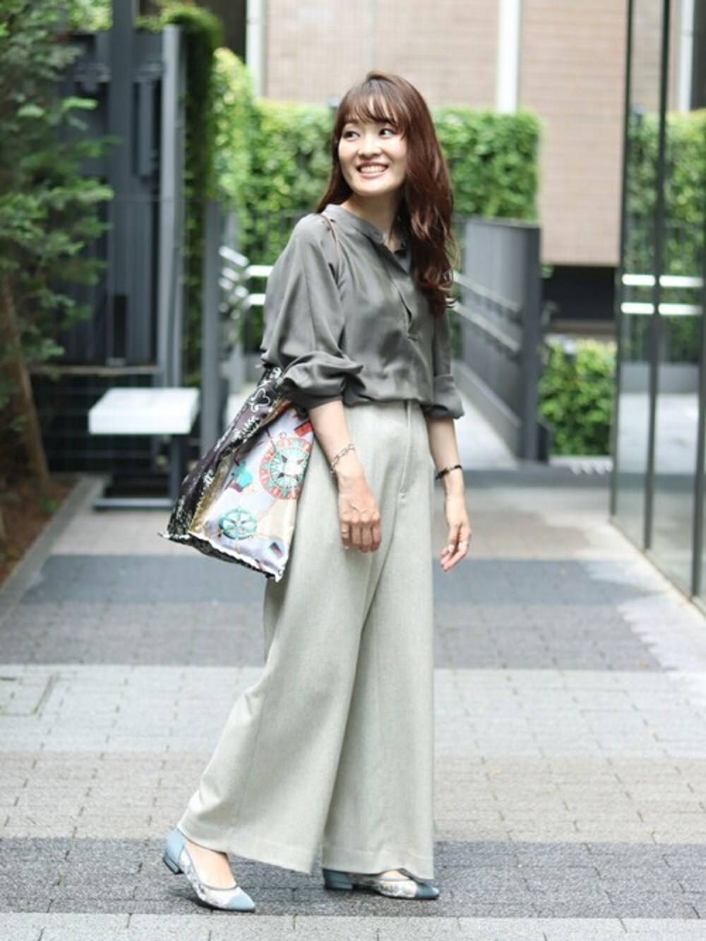 程よい透け感のチュールのアッパーが足元から女性らしさを引き立ててくれるフラットシューズです。 非常に足当たりが柔らかく、ソールの返りもいいのでデイリーに活躍するアイテムです。 更にとても軽量なので脚への負担も少なく、沢山歩く日にもおすすめの1点です。 今回はオフィスカジュアルなスタイルで合わせましたが、デニムやワンピースなどのカジュアルなアイテムとも好相性です。 普段サイズ 22.0cm 着用サイズ 22.0cm 足幅細め 私は普段のサイズでぴったり履けました。 履いているとどんどん足に馴染んできてくれるのも良いですね。