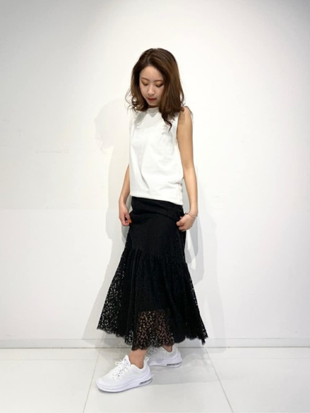 普段着用サイズ/23.5cm 着用サイズ/23.5cm ラッセルレーススカートを主役にスポーツカジュアルにまとめてみました。 とても優れたクッション性で長時間歩いても疲れにくい万能なシューズです。