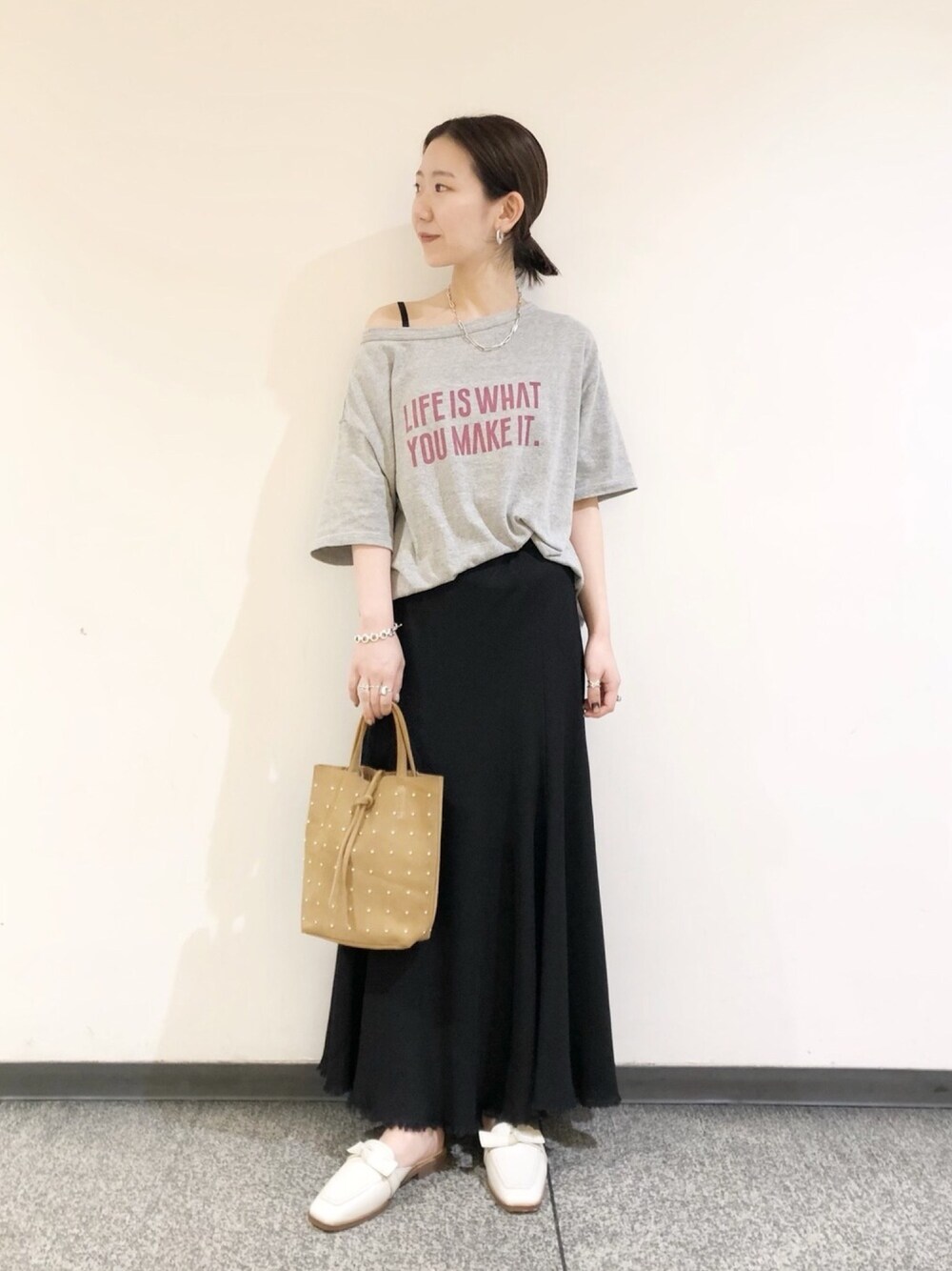 【着用サイズ】 Mサイズ 【普段サイズ】 24.0cm 【足幅】 広め ◼︎着用感 普段24.0cmを履きますが、23.5cmもたまに履くので こちらはMサイズでちょうどよかったです。 ◼︎おすすめポイント スクエアトゥでリボンも甘くなりすぎず 大人カジュアルに履きこなせます。 甲が深いのでミュールタイプですが脱げにくく歩きやすいのも嬉しいポイント。 パンツにもスカートにも合わせやすいので デイリーに使える一足です。