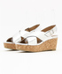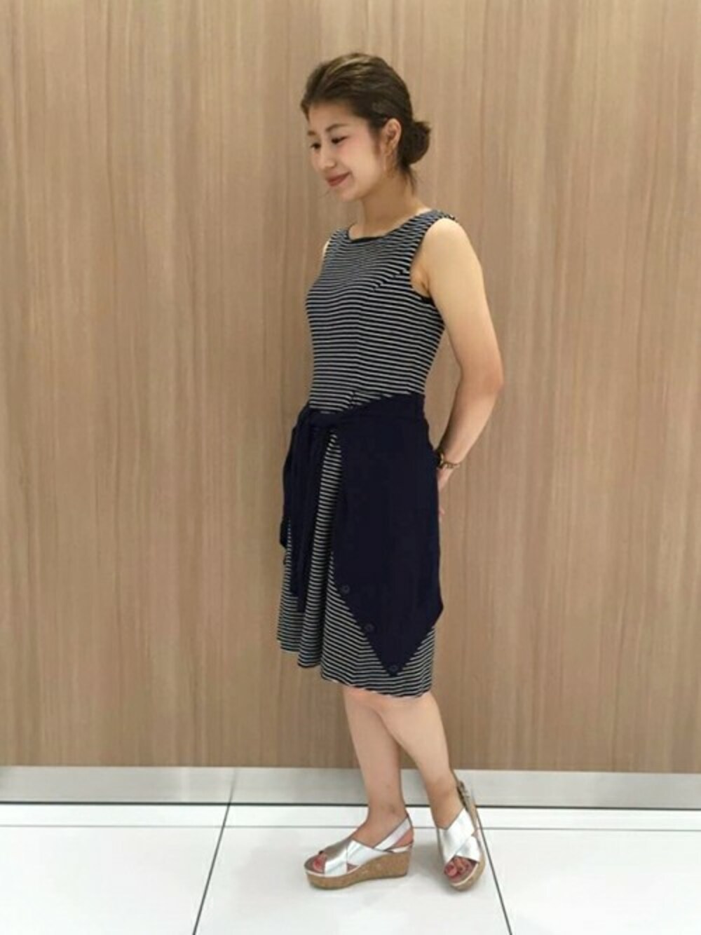 夏の足元に映えるシルバーカラーがモノトーンコーデのポイント。 プラットフォームでスタイルアップ効果も嬉しい1足です。