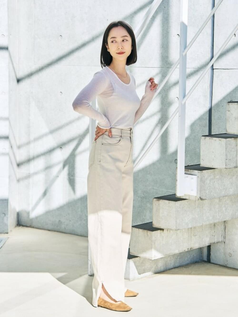 ─────────────────── 【着用サイズ】 23.5㎝ 【普段サイズ】 23.5㎝ / M 【足幅】 普通 ─────────────────── ■着用感 普段サイズで丁度良く、締め付け感なく履けました。 ■おすすめポイント ・トウ先の小さめスタッズが程よくモードな印象で履けるフラットシューズ。 ・スクエアトウで締め付け感なく、甲深で足をしっかり包んでくれるので安定感のある履き心地も魅力。 ・春らしいスウェード調の素材感が大人な印象に仕上げてくれます。