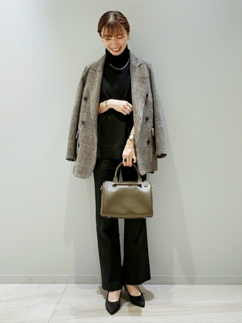 ─────────────────── 【着用サイズ】24.5cm 【普段サイズ】24.0cm/Lサイズ 【足幅】左足:外反母趾 右足:普通 ─────────────────── ■着用感 インソールのクッションがきいており、足あたり柔らかい履き心地です。 普段よりワンサイズ上げて、つま先の窮屈さがなく履くことができました。 ストッキングだと若干ゆとりがでましたが私は足の指が長めなので、24.5cmの方がおさまりよく履けました。 ■おすすめポイント ・スッキリ見せながらも安定感のあるデザインです。 ・パンツで合わせましたが、これからの時期はタイツでスカートの相性も◎ 【Story./ストーリー:レザーボストンバッグ 】 幅広いスタイリングに馴染む柔らかいカラーが魅力です。 お財布、携帯、ポーチなどしっかり入る大きさなので、実用性も◎。