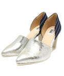 シルバー×ストライプ柄がお気に入りのパンプス。