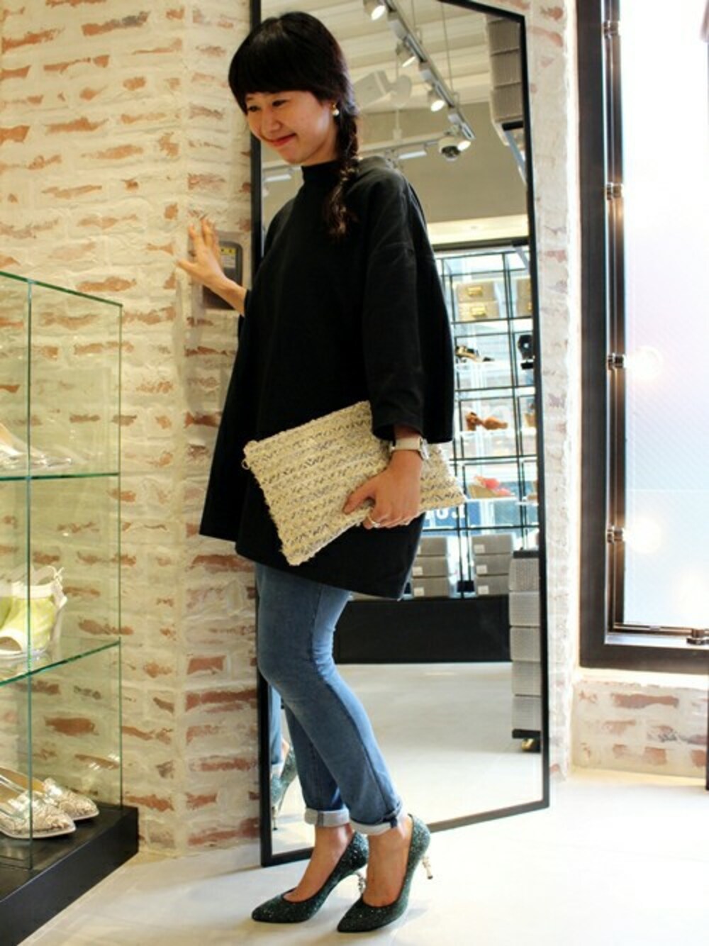 Le Talon表参道店スタッフのパンプス「GRISE 8.5CMグリッタースターヒールパンプス◆」を使ったコーディネート