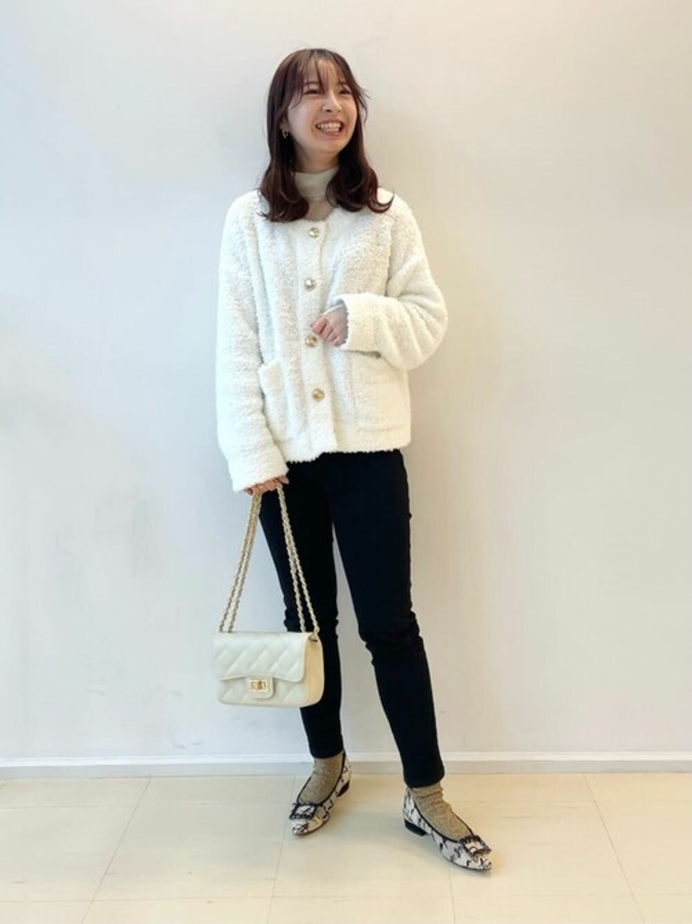 ------------------- 【着用サイズ】 24cm 【普段サイズ】 21〜21.5cm / SS 【足の特徴】 幅狭め、甲低め ------------------- ◾️着用感 いつものサイズで、きつくもゆるくもなく、ちょうどよく履けました。 特にこの色は見た目より柔らかな履き心地なので、靴擦れしにくくノンストレスです! ◾️おすすめポイント ・筆記体やビジューがアクセントで可愛い ・ベーシックカラーなので、お洋服の色選ばない ・想像より全然楽で快適な履き心地 ◾️AULENTTI キルティングチェーンショルダー キルティングとチェーンが映えるミニバッグ。 ナチュラルカラーは少しクリームっぽい色味が絶妙で可愛いです! 携帯とミニ財布はすっぽり入ります◎ ◾️Instagram : @le_min_s 最近始めました! フォローしていただけたら嬉しいです!