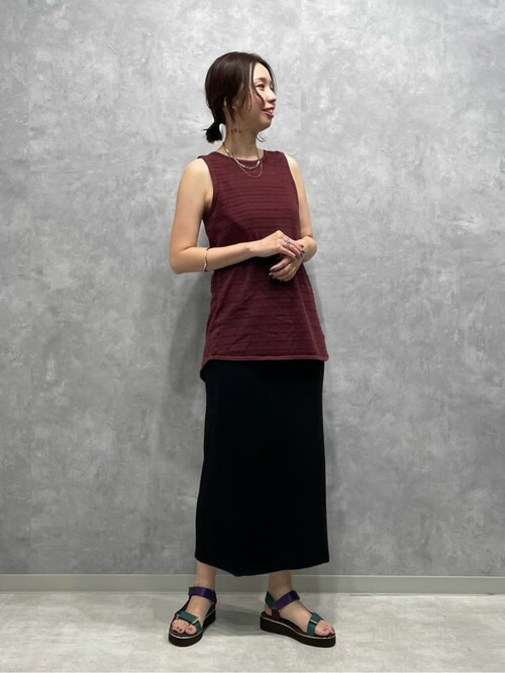 SAKIのサンダル「GRISE アツゾココンビストラップサンダル」を使ったコーディネート