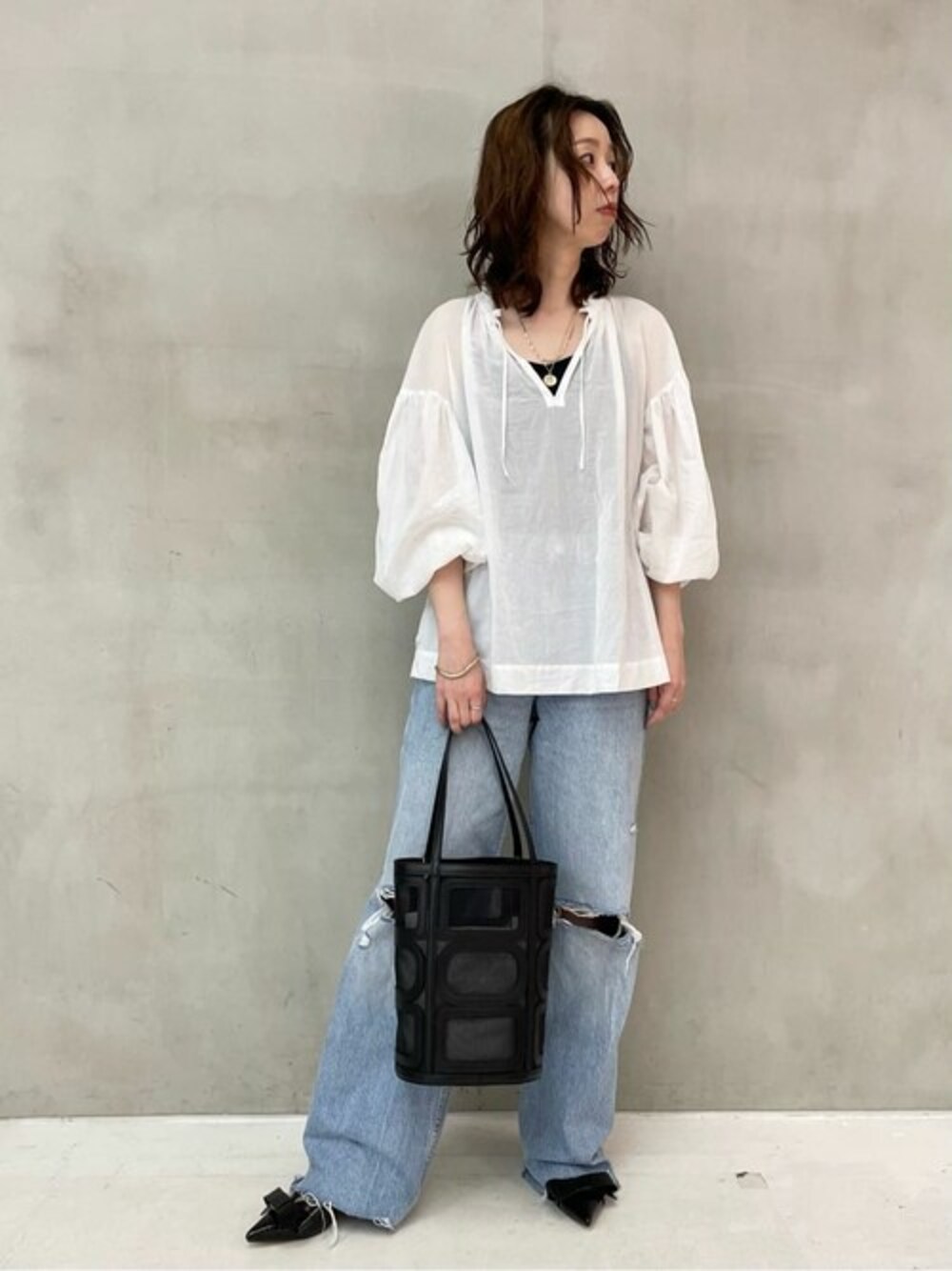 SAKIのその他シューズ「GRISE 4cmポインテッドリボンミュール」を使ったコーディネート