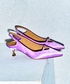 ─────────────────── 【着用サイズ】 24.5㎝ 【普段サイズ】 24.5㎝ 【足幅】 細め ─────────────────── ■着用感 普段のサイズで幅や指先も圧迫感なく履けました。私が踵が細めで脱げやすい足なのですがこちらはゴムがついてるのでピタっとフィット感もあり歩きやすいです。 ■おすすめポイント ・ゴールドのオリジナルパーツがさりげなくオシャレな印象に ・サテンのパープルカラーで上品な足元で楽しめる ・スパイクヒールで華奢見えでも安定感あり歩きやすい!