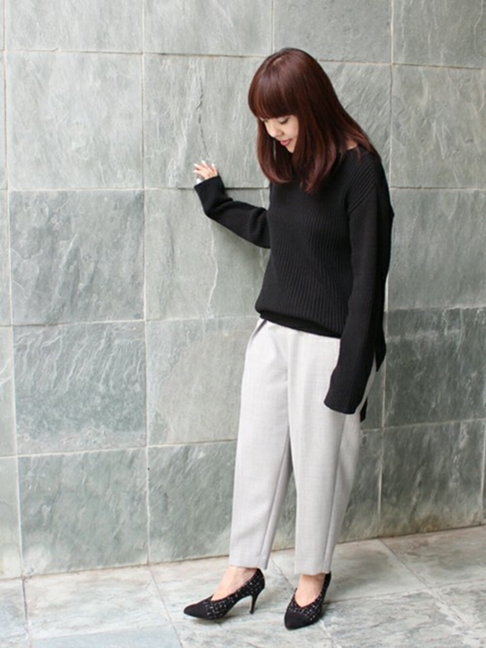 秋の着こなしにマッチするツイード素材が、シンプルなスタイルにさりげない存在感。 Vカットで女性らしいシルエットのパンプスは、パンツに合わせても上品にまとまります。