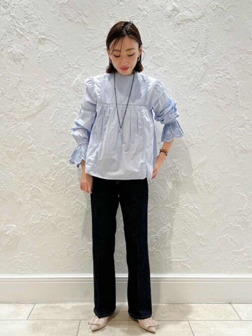 ─────────────────── 【着用サイズ】 23cm 【普段サイズ】 23cm 【足幅】狭め ─────────────────── ■着用感 普段のサイズで少しゆとりのある位でした。 ハーフサイズ下げても履けそうです。 ■おすすめポイント ・程よい透け感とラメが可愛い ・すっきりなポインテッドトゥなのでリボンのデザインでも大人っぽく履けます ・チュール素材も柔らかく履き心地も◎ ◼️LETALON静岡店は、スローブイエナとの複合店になっております。 そのためスローブイエナのアイテムを着用しております。 静岡店へお越しの際は、ぜひお立ち寄りくださいませ。 ☑︎個人Instagramでもおすすめアイテム更新中 @ukapi