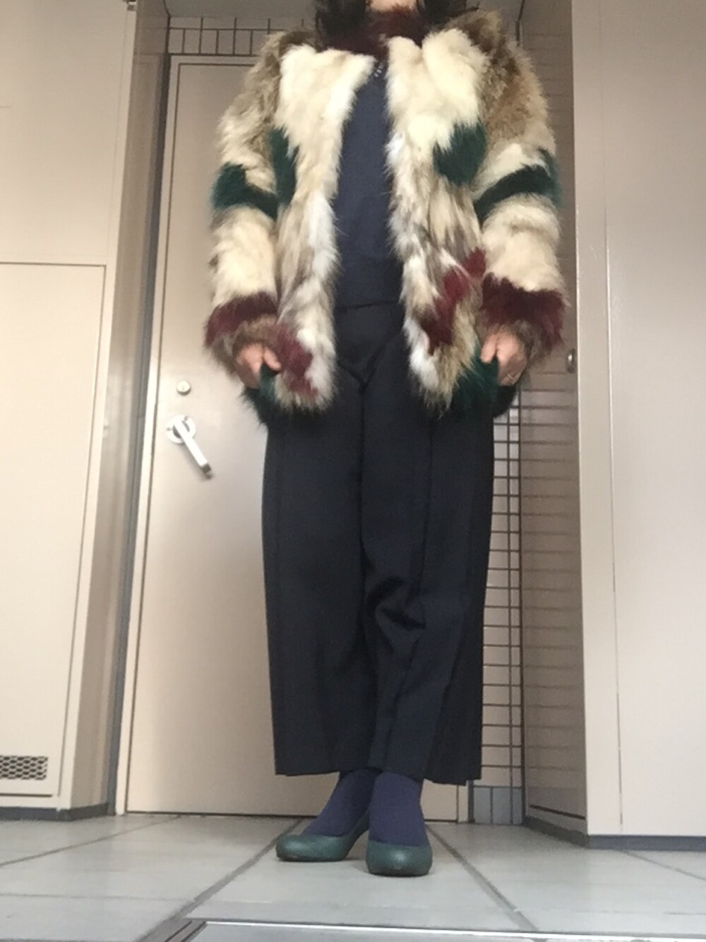 きょうは晴れていたけど、太陽見えないので、ファーは着たり脱いだり。でも、MURIAの遊びある、大胆、存在感ファーコート。ブラボー。 ウィグを付けたけど、頭が締め付けで痛くて結局クライアント