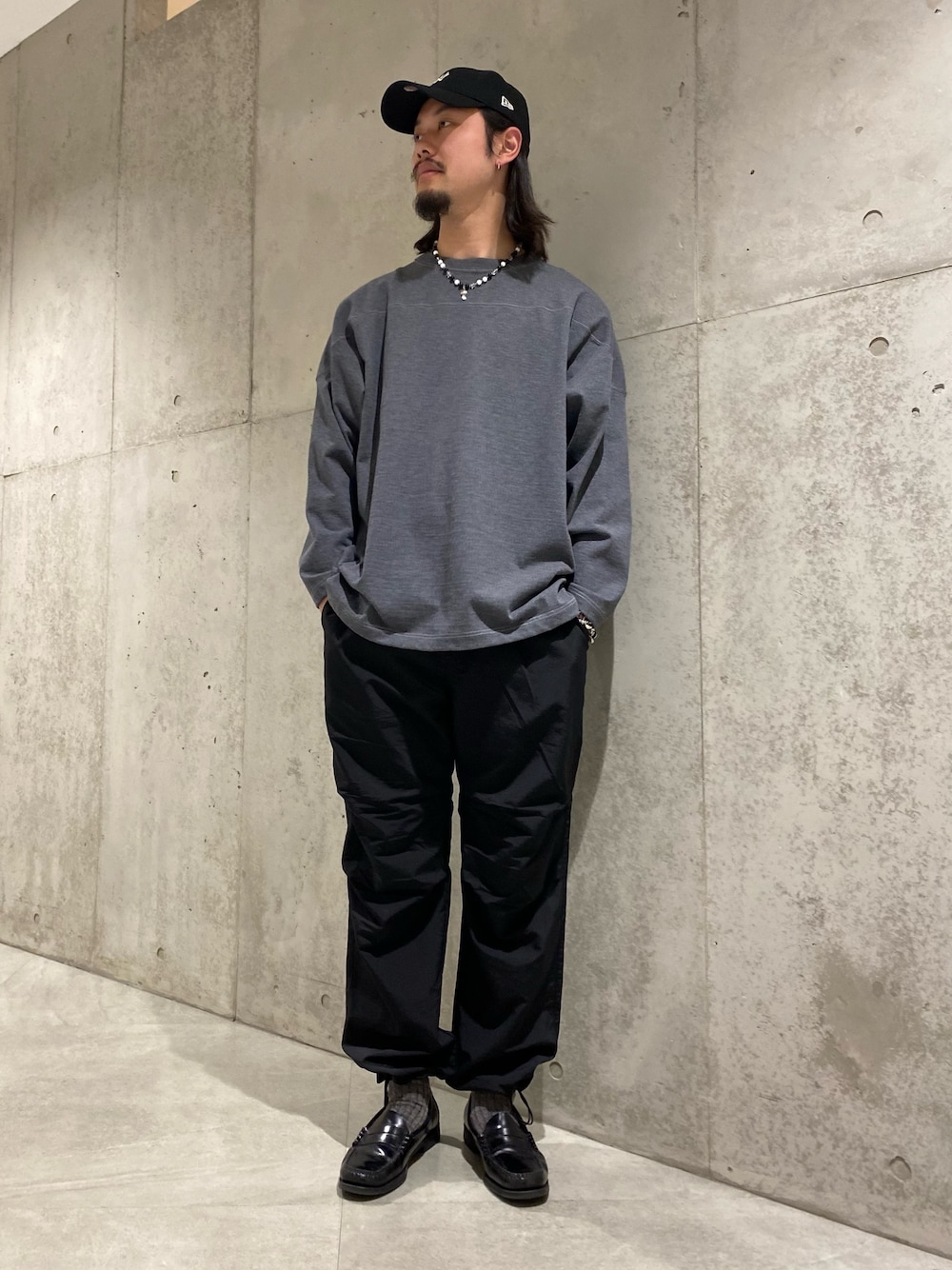 ご覧いただきありがとうございます! 全身モノトーンのアイテムでコーディネート組んでみました。 若干暑苦しい印象ですが、このくらいリラックスしたムードのモノトーンは大人っぽくもありオススメです◎ mocTのFOOTBALL T-SHIRTSは今の所今期ベストバイなので是非皆様お試しください^_^