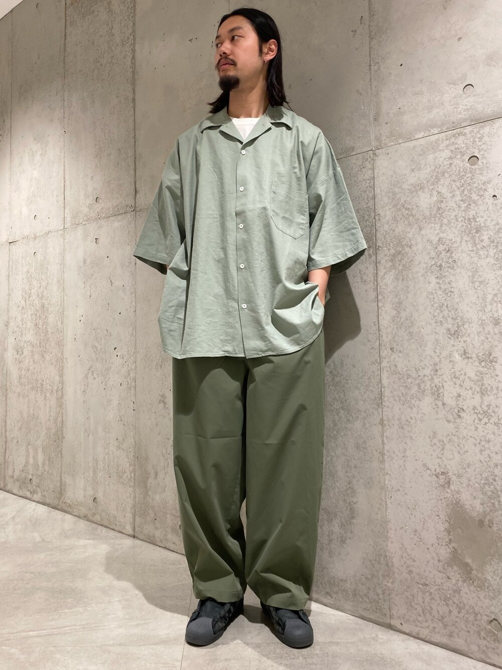 letsperperのシャツ/ブラウス「ARMY TWILL C/L Slab Half-Sleeve Big Shirts」を使ったコーディネート