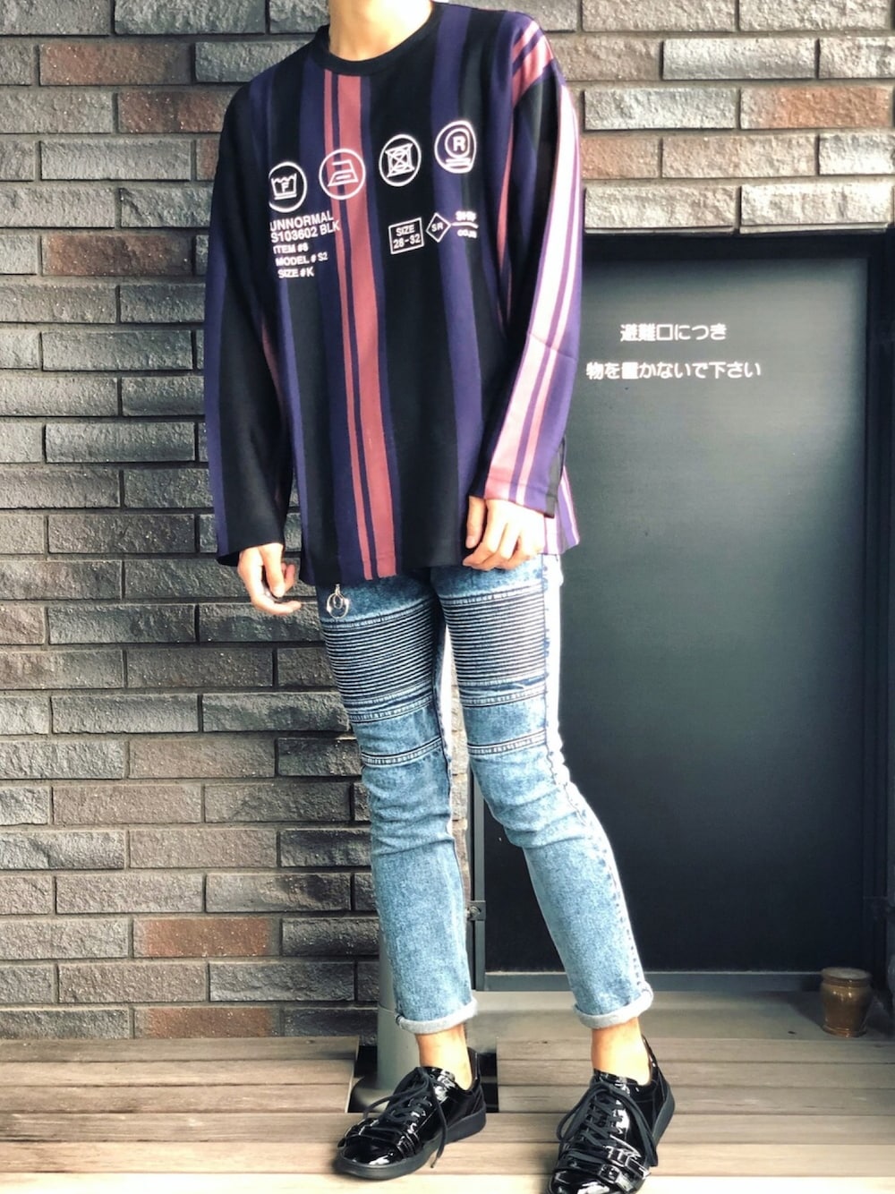 このトップス、黒スキニーと合わせるのも悪くないけどデニムの方が個人的に好きです〜 洗濯表示のマークとデニムのブルーが相まって可愛らしい印象に。 素材もキュプラが主に使われていて他のトップスと違って独特な触り心地あります。