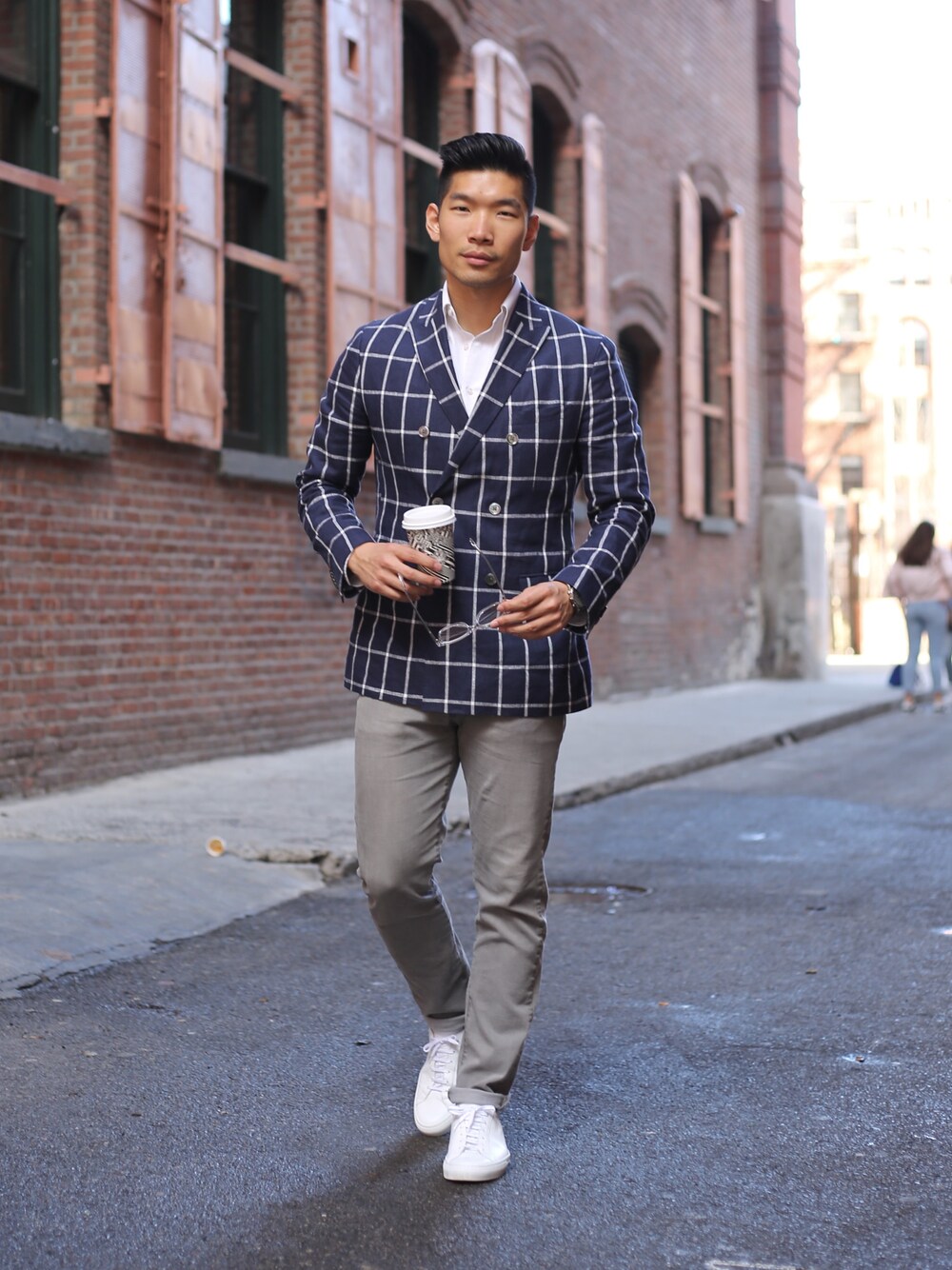 Pair a blazer with jeans instead of work pants for a sharp casual look