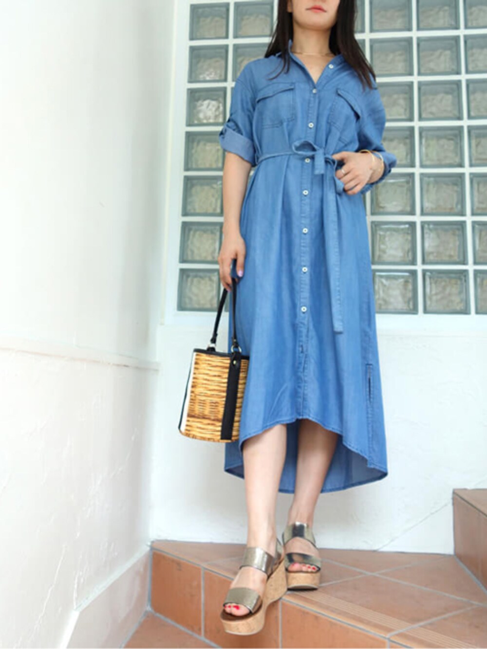薄手で軽いシャツワンピース ワンピースだけでなく羽織としても活躍する一着です