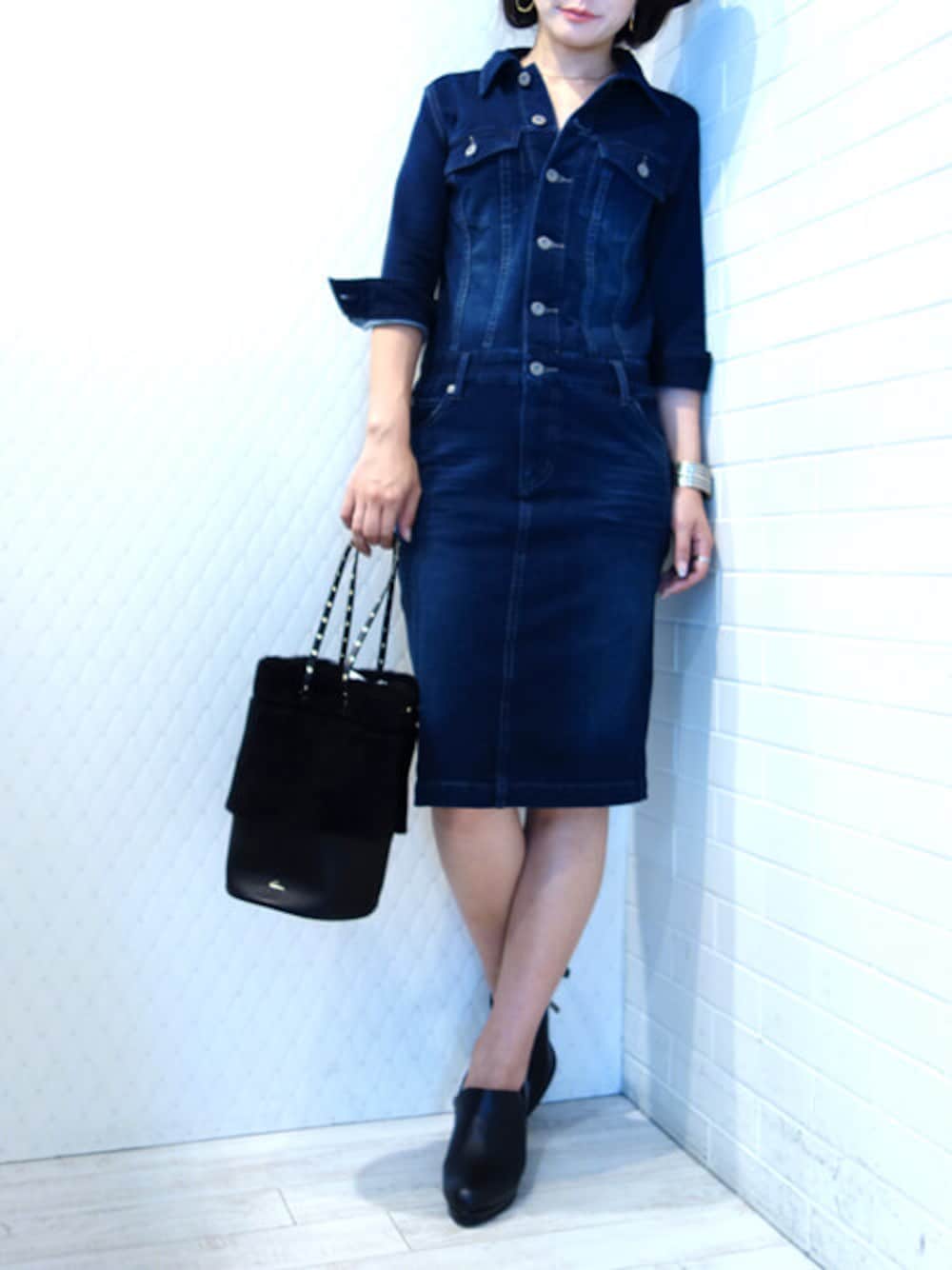 レーヴルのワンピース「C.C.CROSS デニムストレッチワンピース」を使ったコーディネート