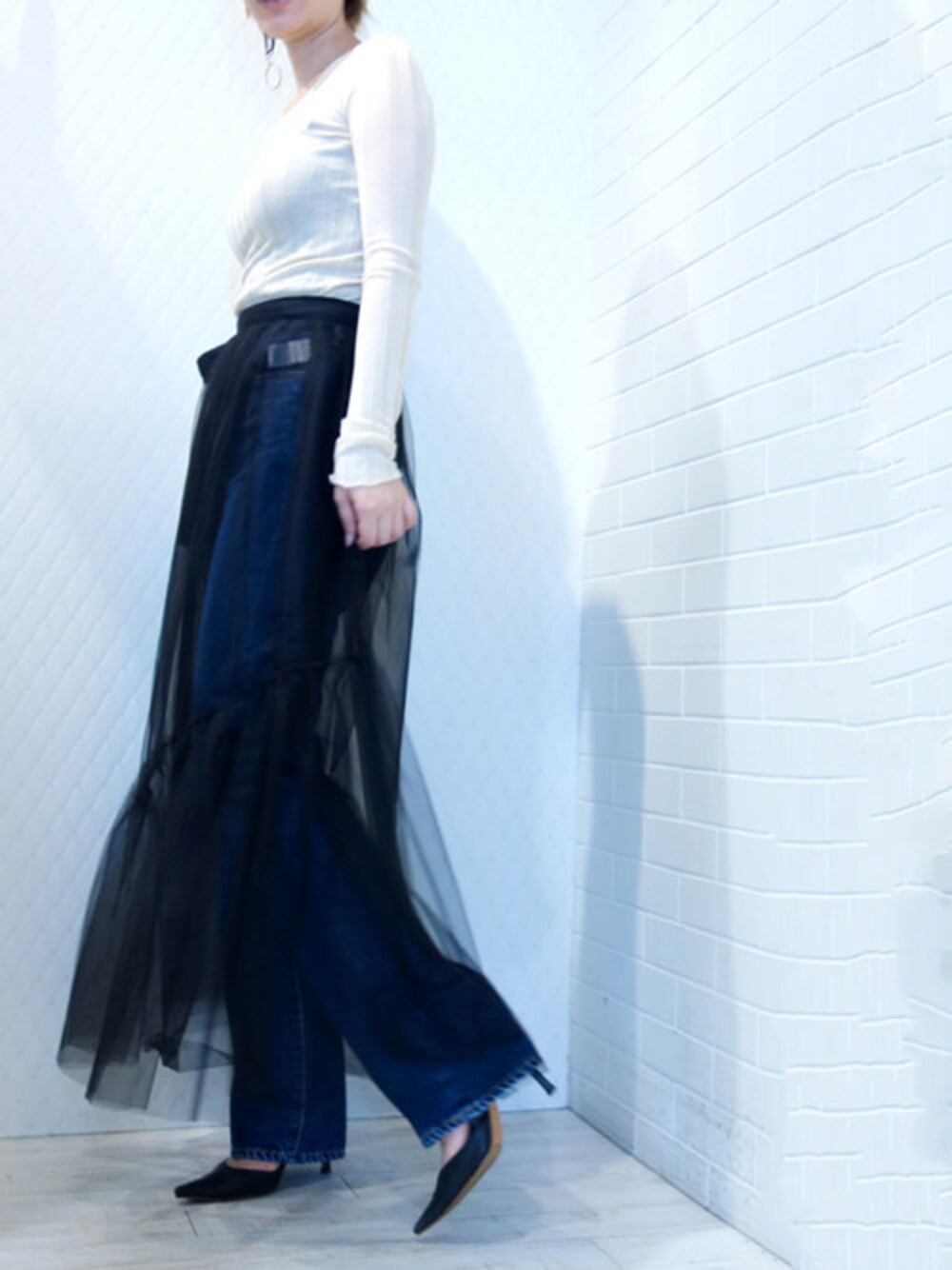 レーヴルのスカート「AULA チュールレイヤードラップスカート」を使ったコーディネート