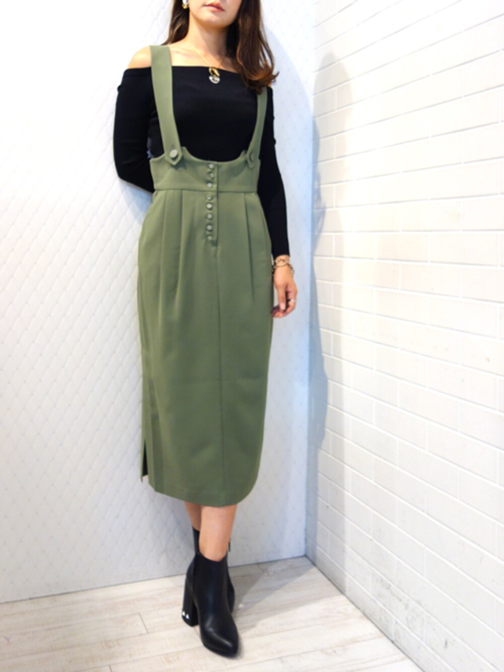 こどもっぽい雰囲気のジャンパースカートを大人な雰囲気に