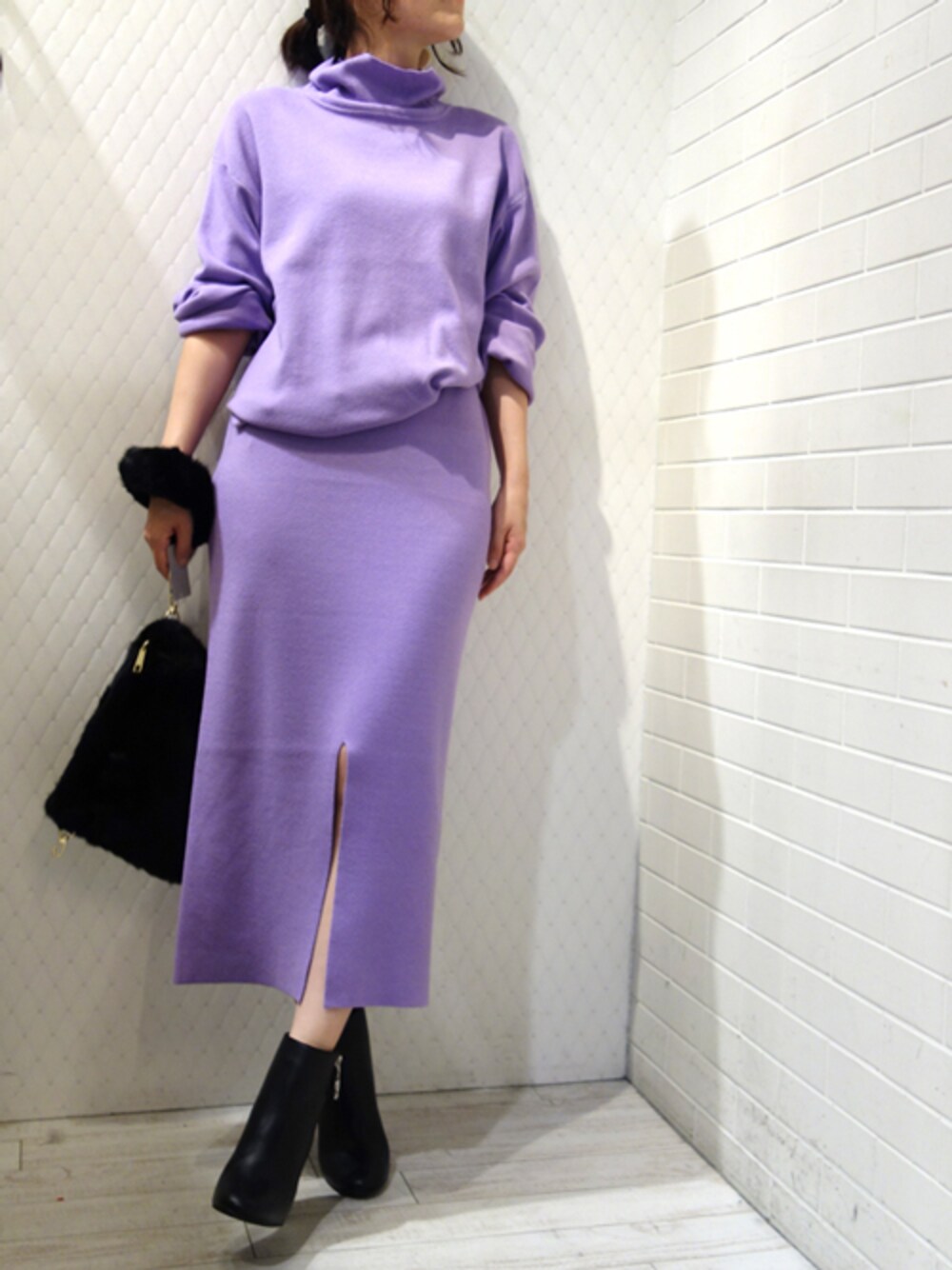 ラベンダーのキレイ色セットアップ オーバーサイズのニットがゆるっとリラックスモードに