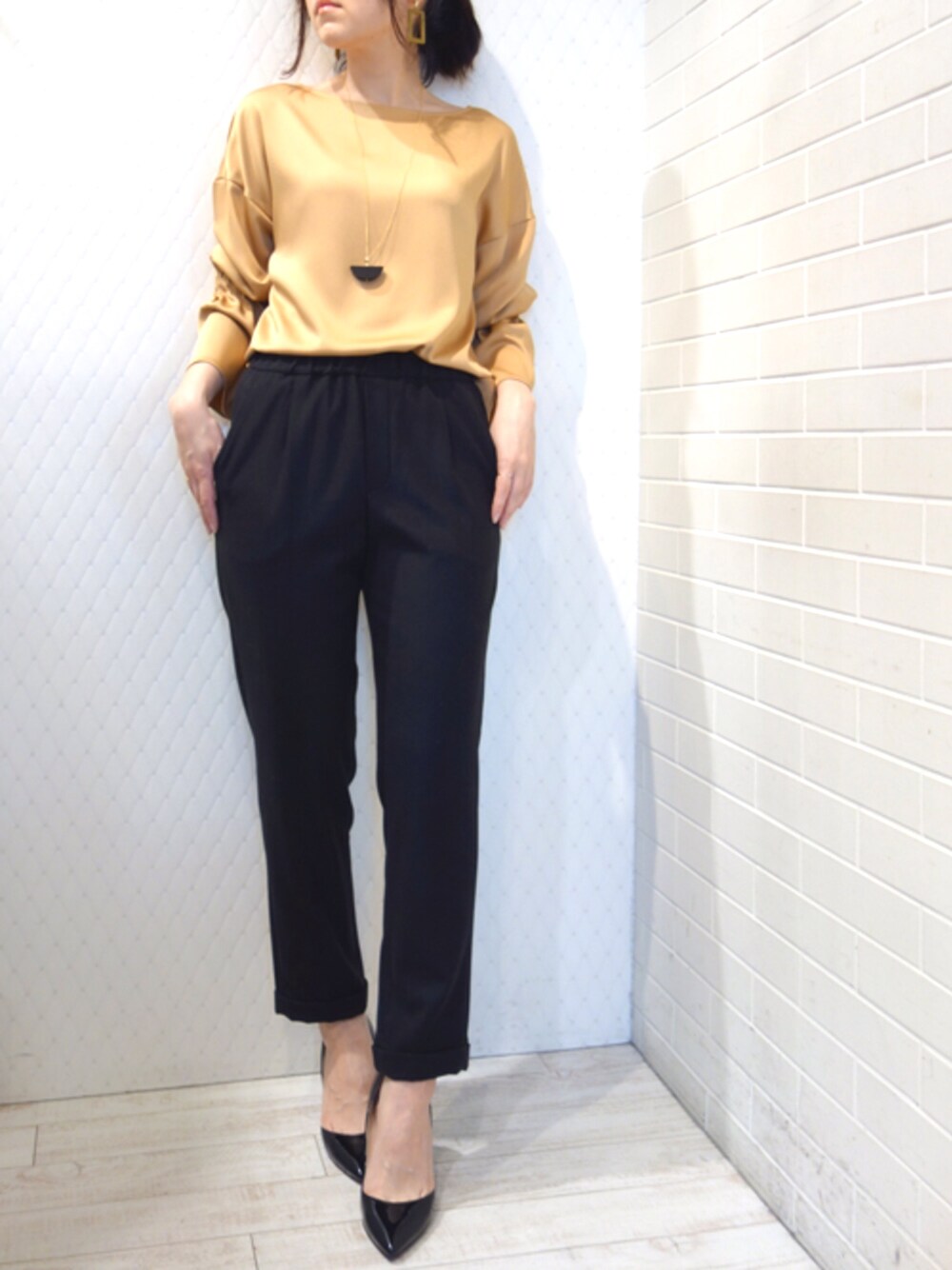 とろみと光沢のあるブラウスはセットアップ風にすれば・・・・ 卒業式や入学式のフォーマルにも○