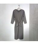 OLさん風休日スタイル ウエストゴムのリボンがアクセントになったブラウジングワンピース