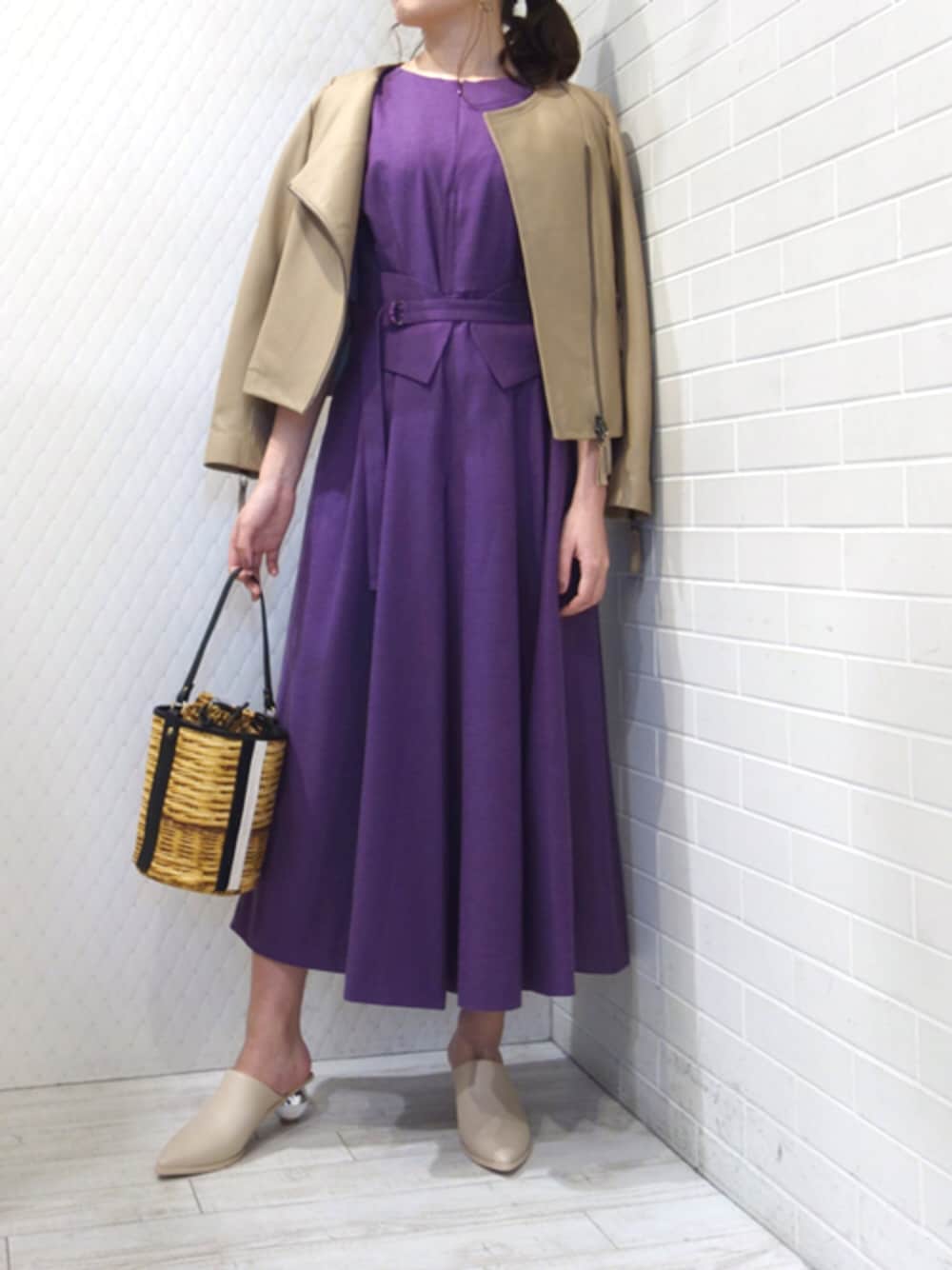 大人っぽさが際立つパープルのオールインワン