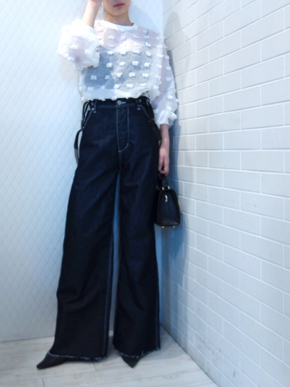透け感のあるトップスでフェミニンを ワイドストレートデニムでかっこよさを