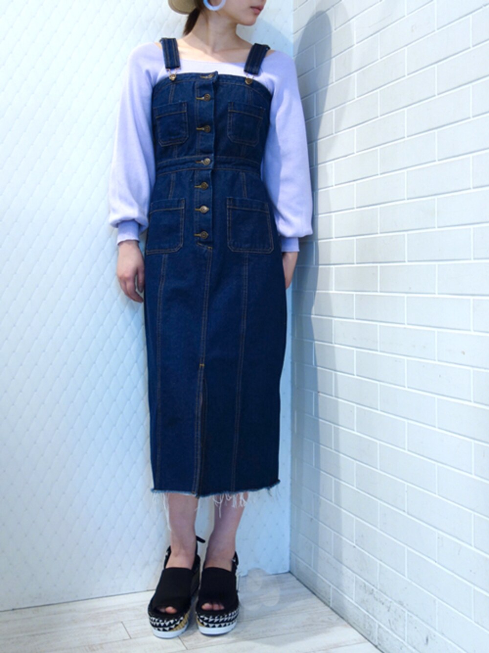 毎年定番のデニムワンピース 細身のシルエットで子供っぽくなりがちなデニムワンピースを大人使用に