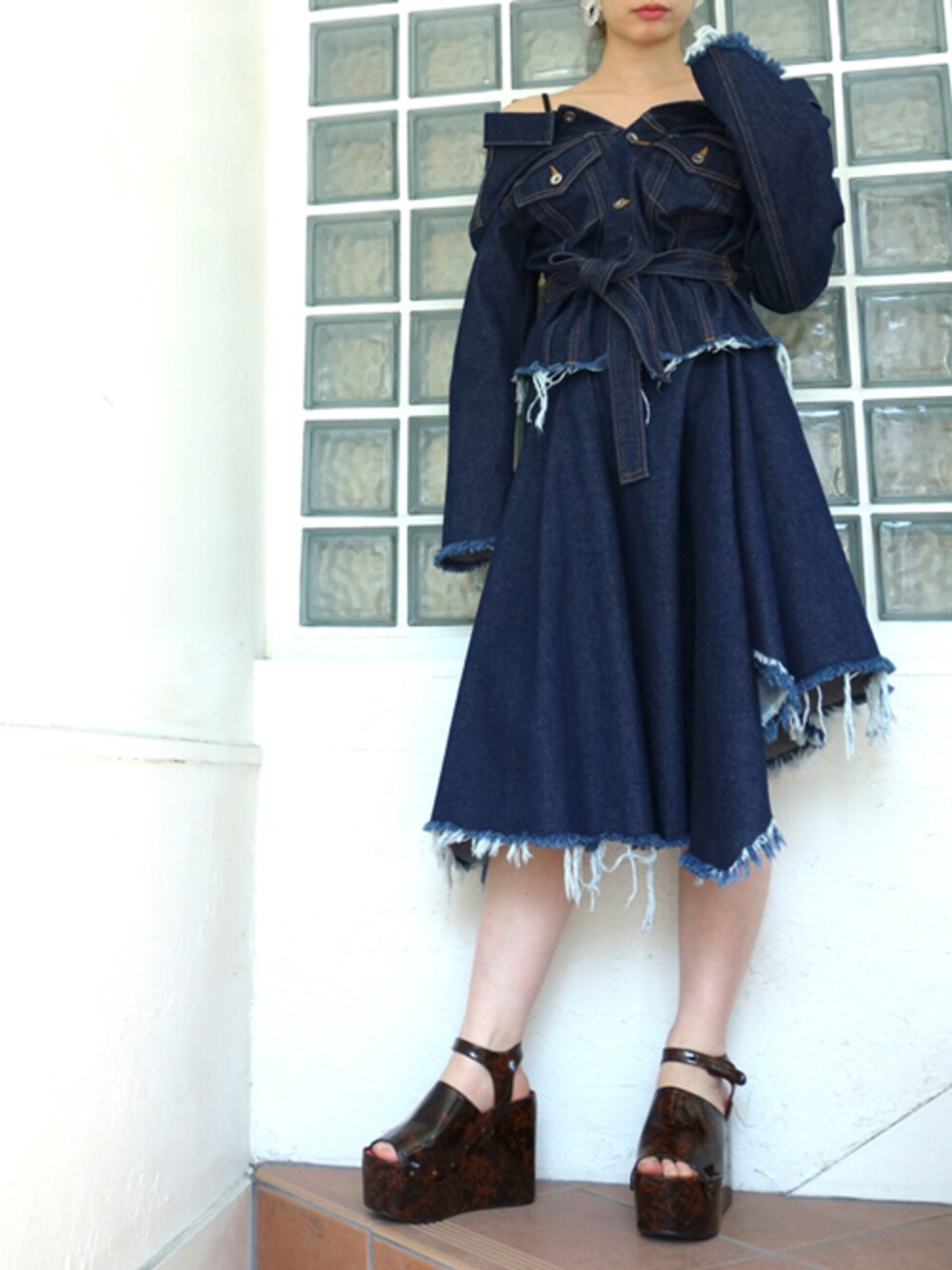 デニムONデニム ワンピースっぽいスタイルにもできるGジャン×デニムスカート Gジャン/デニムシャツ/オフショルなど・・・いろんなスタイルが楽しめる一着です。