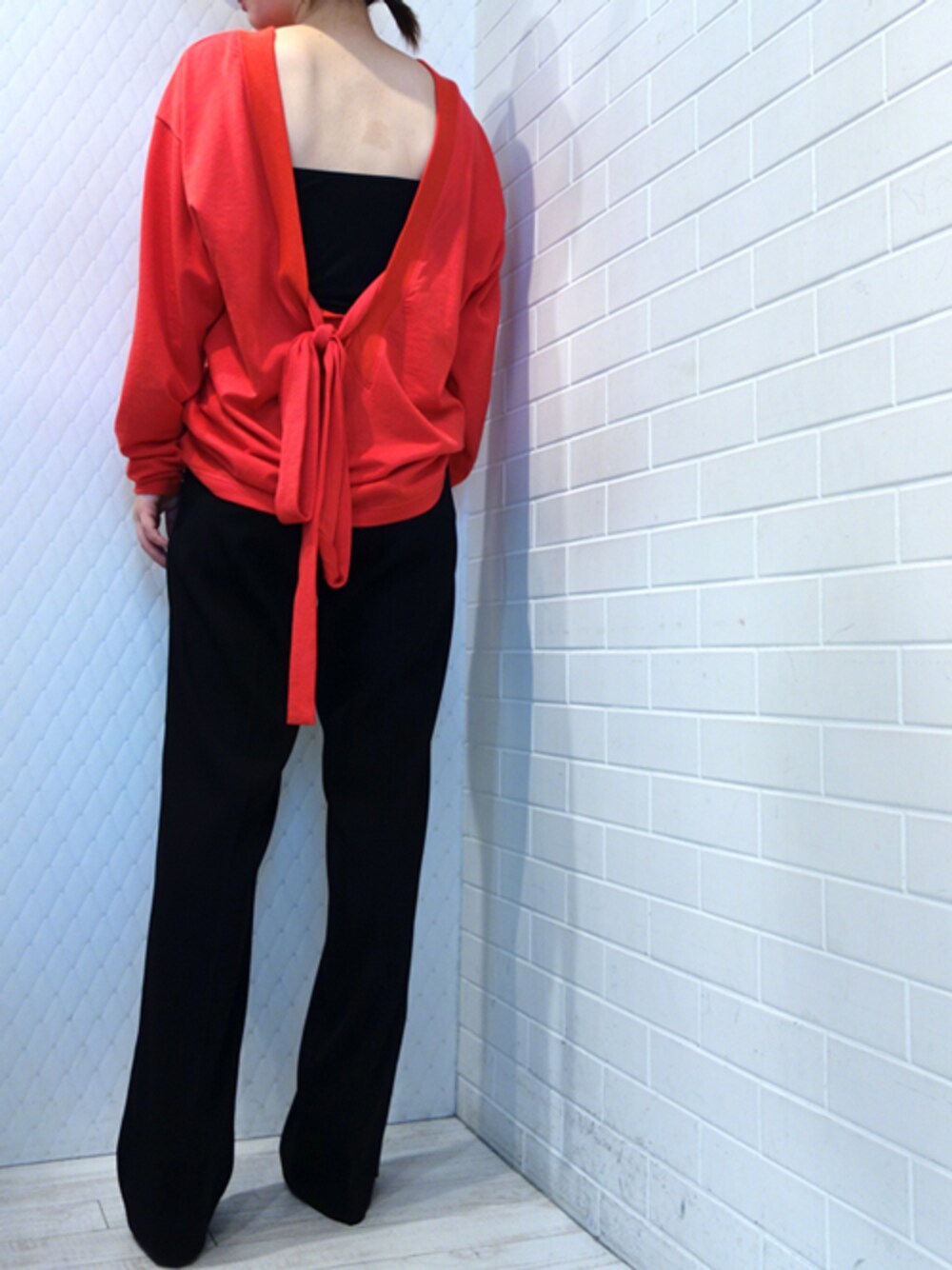 フロントはシンプルに・・・・バックは大胆に・・・・ ギャップがオシャレ心をくすぐるコーデです。